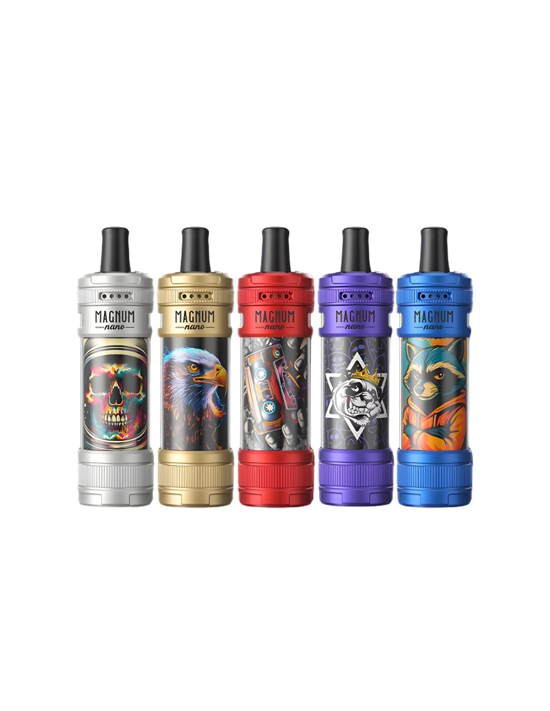 Le Magnum Nano de Aspire allie esthétique cybernétique et ergonomie dans un format cylindrique aussi design que pratique. Disponible en plusieurs styles artistiques uniques, il se distingue comme un véritable accessoire de vape. Son éclairage LED multicolore apporte une touche lumineuse et fonctionnelle, pour un look résolument moderne.