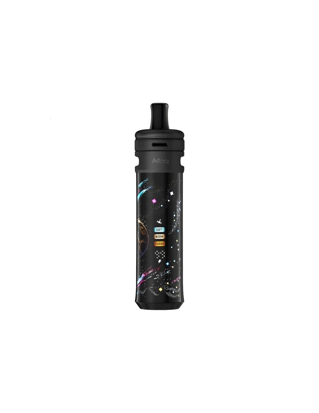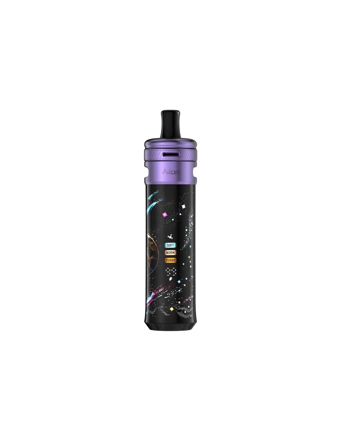 Au cœur de l''Astara bat une batterie intégrée de 3800 mAh, offrant une autonomie exceptionnelle capable de délivrer plus de 2500 bouffées. Avec une puissance maximale de 80 watts, vous pouvez personnaliser votre vape grâce aux modes Soft, Norm et Turbo, l''appareil ajustant automatiquement la puissance selon la cartouche installée. La recharge est rapide via USB-C 2A, et la fonction Passthrough vous permet de vaper pendant la charge.