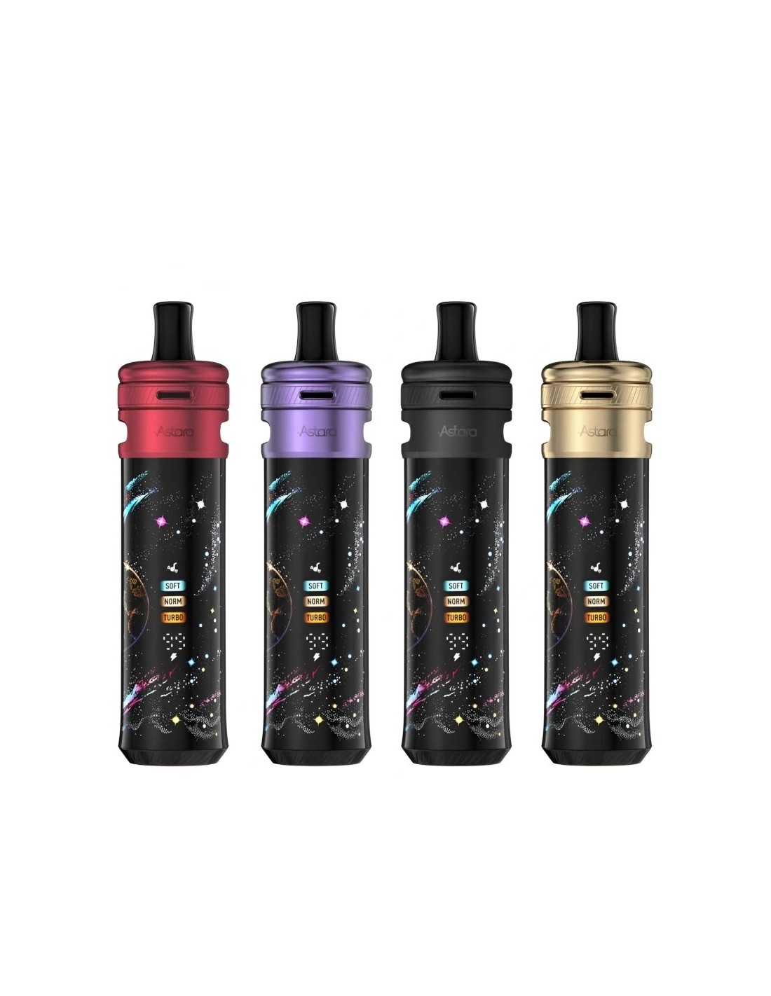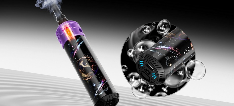 Le Kit Astara se distingue par son esthétique tubulaire premium, disponible dans des finitions captivantes telles que Mystic, Fusion, Infinite ou N0va Galaxy. Compact et léger (135 mm de haut, 123 g), il intègre un écran LED circulaire 360° qui projette des animations cosmiques dynamiques (galaxies, étoiles, bulles) pour une immersion visuelle totale.
