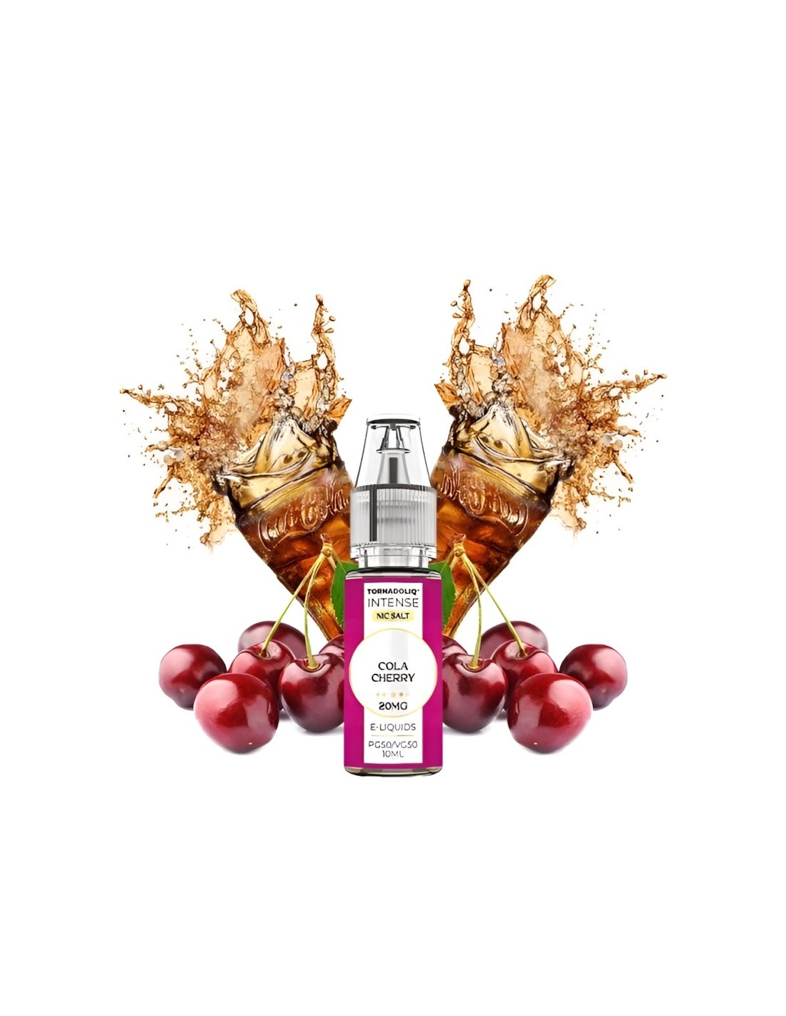 Le Cola Cherry Nic Salts 10ml Intense by Tornadoliq marie un cola pétillant et rafraîchissant à une cerise douce et gourmande pour une expérience de vape savoureuse et pleine de caractère. Une recette équilibrée qui séduira les amateurs de boissons mythiques revisitées.