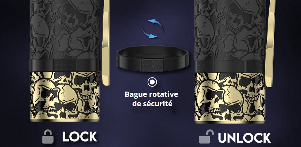 Sous sa coque stylisée, le Hyperion V2 dissimule un système de fire bar latéral intégré au clip de poche, vous offrant un déclenchement instantané et sécurisé. La course du switch est entièrement réglable pour une activation sur-mesure, et une bague rotative de sécurité permet un verrouillage total du mod pour éviter tout déclenchement accidentel. L’ensemble est optimisé pour accueillir un accu 18650 ou 21700, assurant une autonomie confortable pour une vape puissante tout au long de la journée.