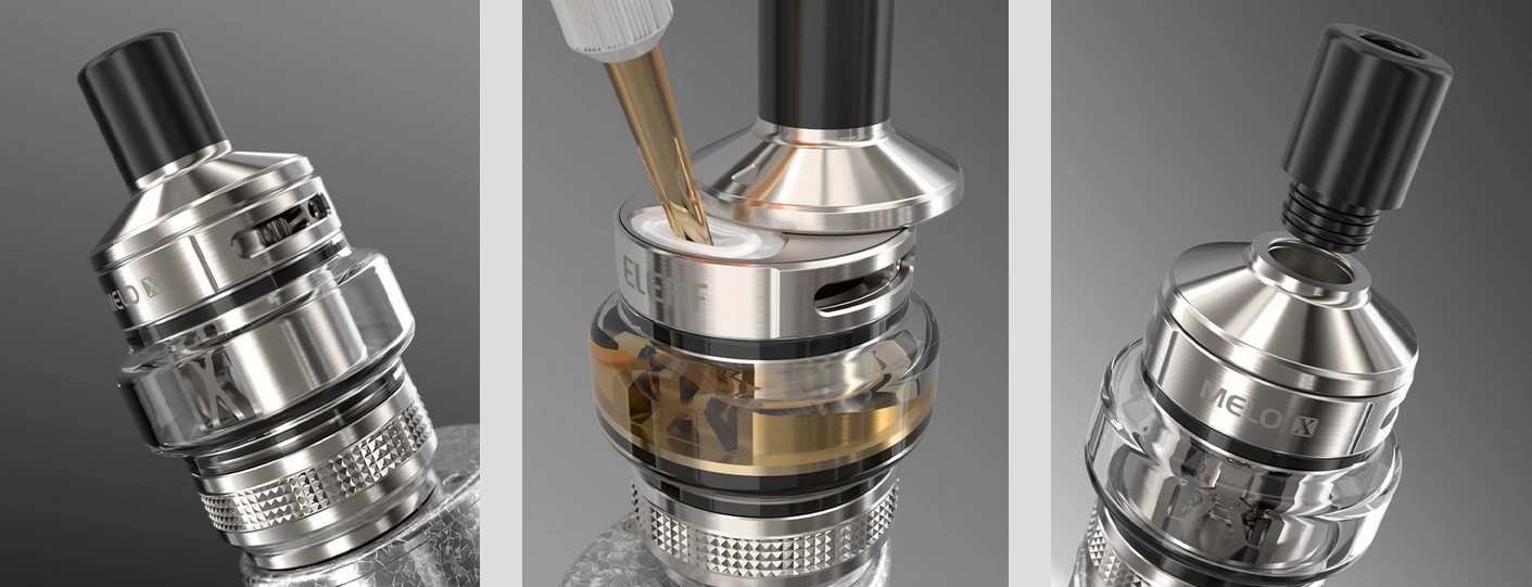 Le clearomiseur MELO X qui accompagne le mod offre une contenance confortable de 5ml. Il dispose d’un système de remplissage par le haut très pratique, d’un airflow ajustable à double fente, et est entièrement compatible avec les résistances EC Series.