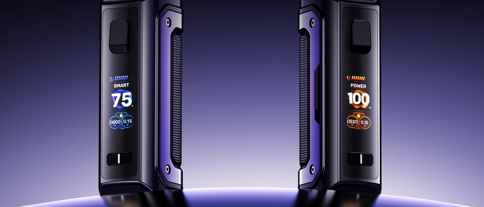Son écran TFT 0.96” clair et intuitif facilite le réglage des paramètres, tandis que le mode SMART ajuste automatiquement la puissance selon la résistance installée. Le mode POWER permet quant à lui un réglage manuel précis.