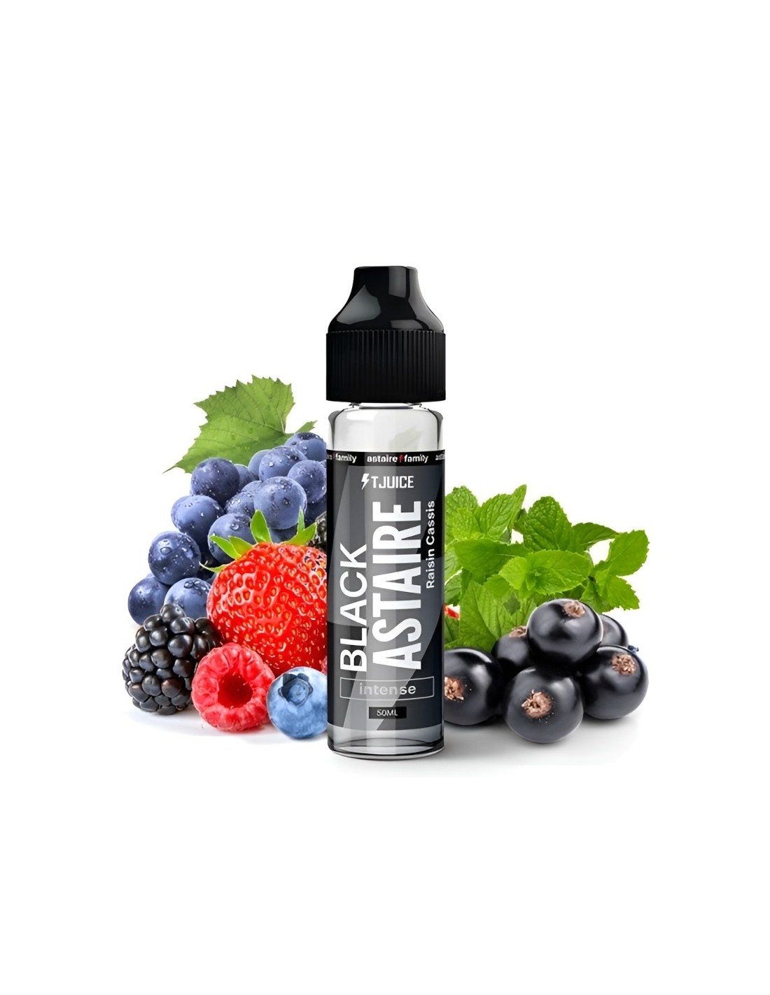 Black Astaire de la gamme Astaire Family par T-Juice, un e-liquide intense mêlant fruits rouges, baies noires, cassis et raisin, relevé d’une fraîcheur envoûtante.